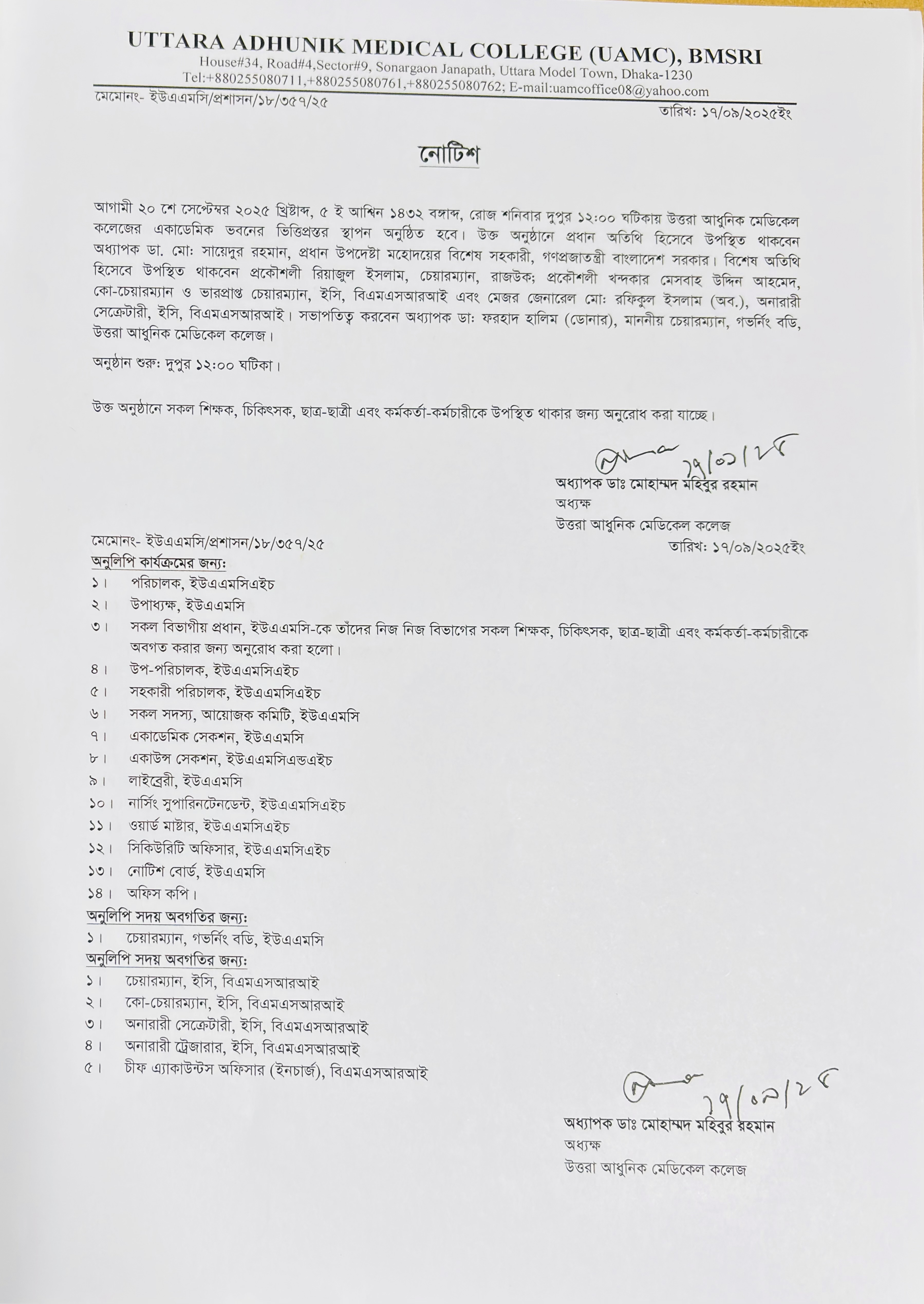 Bangladesh is a country of a small geographical area bearing a greater population. With a number of socioeconomic impediments and limitations, it’s been a daunting challenge for our Govt. to ensure best available health services to every corner of the country. To supplement government efforts, Uttara Adhunik Medical College Hospital (UAMCH) started comprehensive health service relentlessly for the local community on its establishment in 2003 expanding to a tertiary level multidisciplinary hospital over the last decade. It has shown commendable progress not only in providing world class medical care in affordable price but also in dispensing standard medical education in a suitable teaching-learning environment. The vast, laborious curriculum of MBBS course has been made easier and manageable by continuous efforts of our dedicated teachers and faculty members.